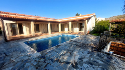 For sale is a stunning, modern bungalow located in the prestigious area of Kouklia - Aphrodite Hills. This key ready home offers spacious living on one effortless level, with a generous internal space of 320 m². The bungalow features three well-sized bedrooms and three stylish bathrooms, ideal for comfortable family living or entertaining guests.