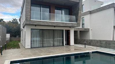 5 Bedroons 5 bathrooms fully furnished and equipped modern designed Luxury Villa for rent in Pegeia with private swimming pool and sea views.