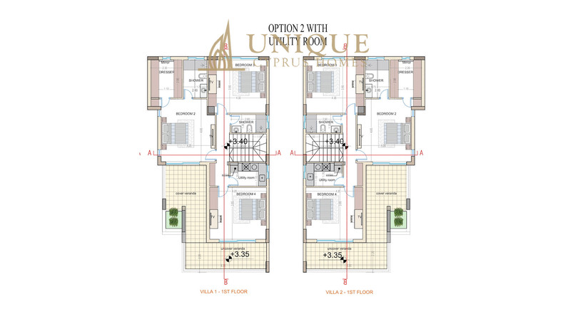 Each villa features 225 m² of internal covered area with 4 spacious bedrooms and 3 elegant bathrooms, designed to maximize natural light and create open, comfortable living spaces. The bright living and dining areas flow seamlessly into the outdoor terraces, ideal for entertaining or relaxing under the Cyprus sun.